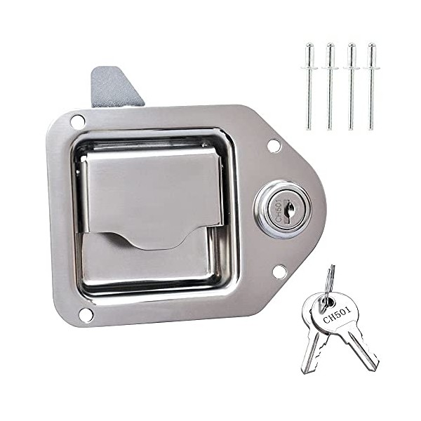 - Package includes: 1 stainless steel paddle latch, 1 gasket, 2 matching keys.