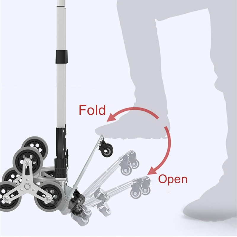 - UNIVERSAL WHEELS : The Stair Climbing Cart is equipped with universal wheels designed to navigate stairs and obstacles effortlessly, enhancing your mobility and reducing strain on your back.