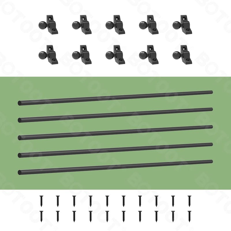 Stair rods for Carpets up to 28/32/36 inches Width Minimalist Style Stair Carpet Runner Rod Set with Spherical Finial and Brackets Easy Install to Secure Stair Carpet (5 Pack, Black 32 inches)
