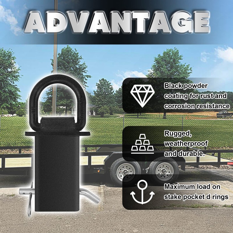 VONLX Stake Pocket D Rings 4Pcs 18000lbs Heavy Duty Removable D-Ring Stake Pocket Tie Down for Utility Trailers and Flatbeds with Hitch Pin, Removable Tie Down Utility for Flatbed Cargo Trucks, Black