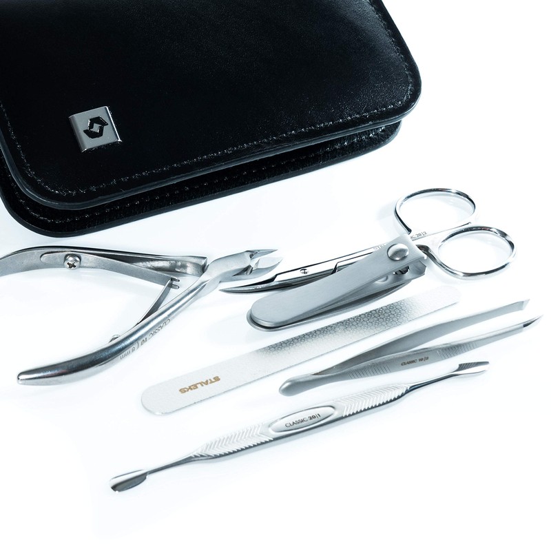 Staleks Manicure Set of 6 pcs - Grooming Kit Real Leather Case (MS09 Black)