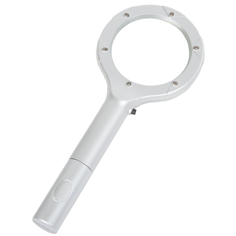 Magnifying Glass with LED Light, Lightweight Handheld Lighted 4X Magnifier (Silver) by Stalwart