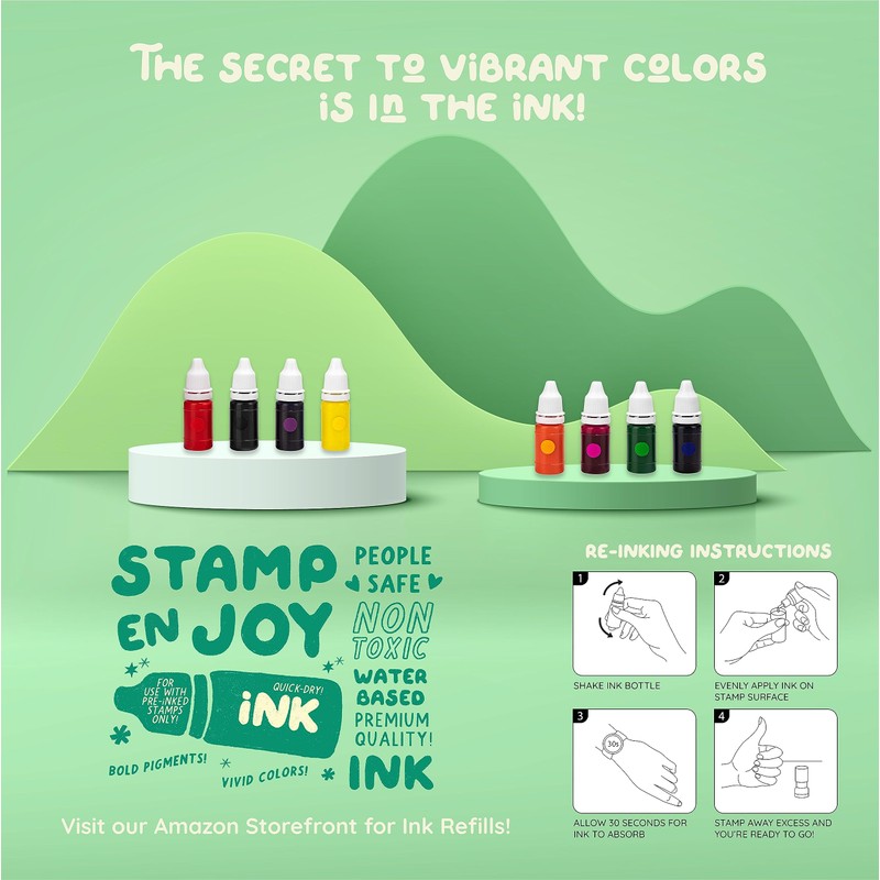 Stamp Joy - Premium Refill Ink for Self Inking Stamps and Stamp Pads, Ink Pads, Water-Based, 8 Color Set