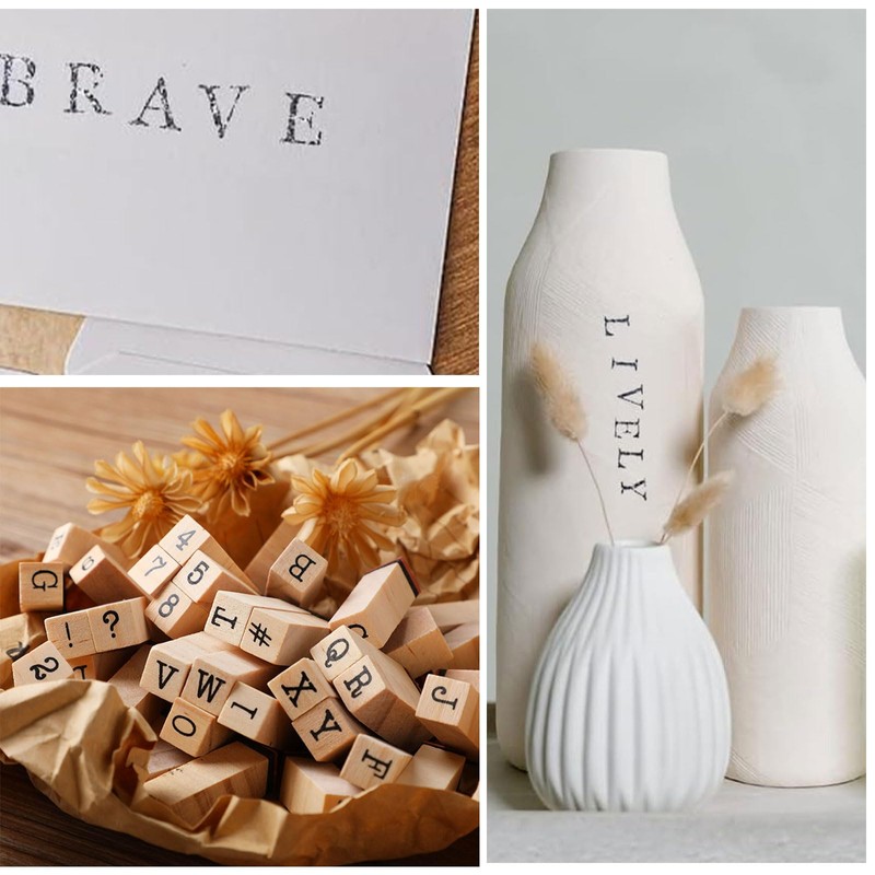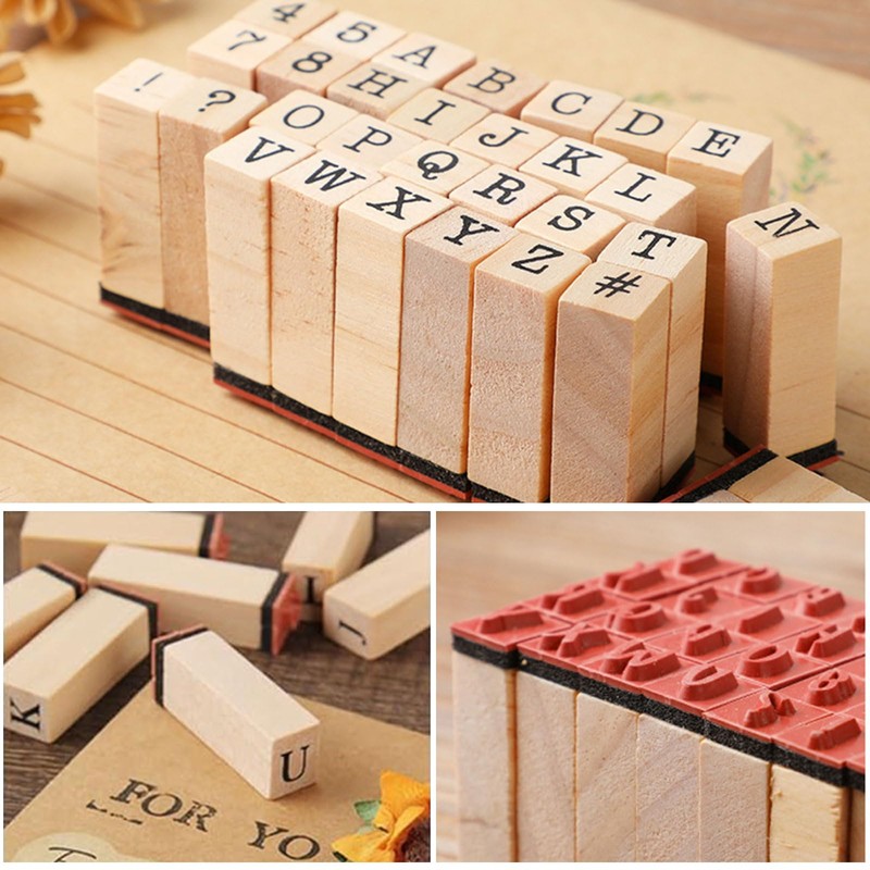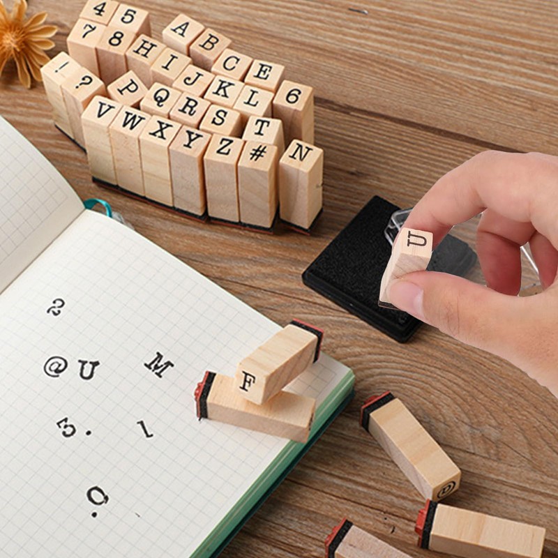 - Package includes: letters and numbers stamp set total 40 wooden stamps with 26 English capital letters, numbers 0-9, 4 symbols and an ink pad.