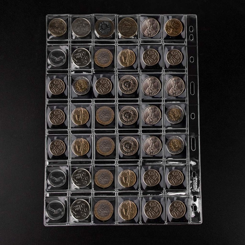 - Product Specifications - 10 sheets, 60 pockets, 6 pockets/sheet. Page Size: 28.0cm x 21.0cm/11.0in x 8.3in, Pocket Size: 97 x 82mm/3.82 x 3.23in. Fits commemorative coins, badges, medallions, tokens, tickets, etc.