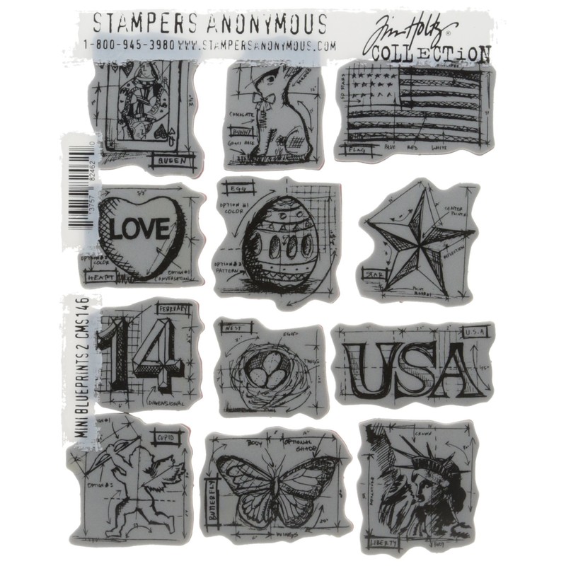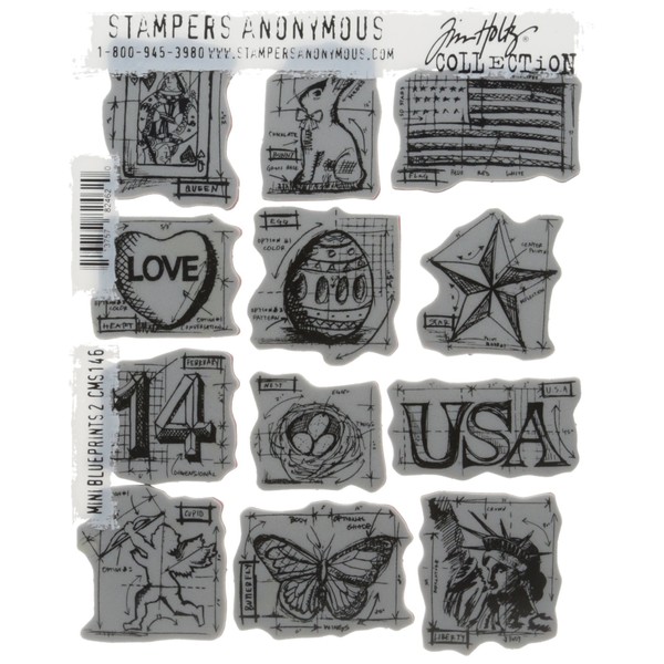 Stampers Anonymous Tim Holtz Cling Rubber Stamp Set, 7 by 8.5-Inch, Mini Blueprints