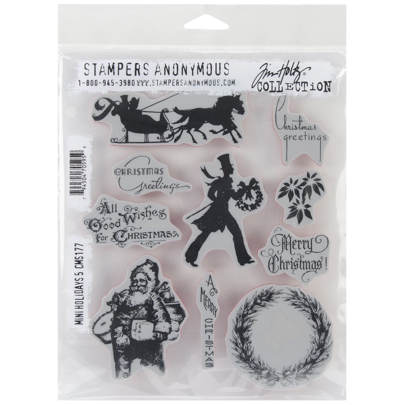 Stampers Anonymous Tim Holtz Cling Rubber Stamp Set 7 x 8.5-inch, Mini Holida...