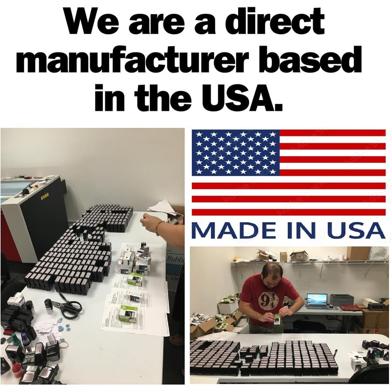 We are US based manufacturers of the stamps and we hand make each rubber stamp in our shop. Our thorough inspection process guarantees that the stamp is of the highest quality.