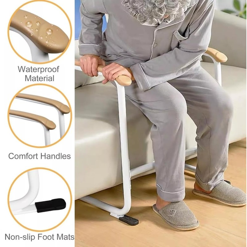 - 【Safe & Stable Couch Stand Assist】: The couch stand assist for the elderly is made of 28mm iron tube with 250 LBS weight capacity, strong and sturdy. The smooth curved design adds an extra level of safety, and non-slip adjustable feets prevent damage to the floor.