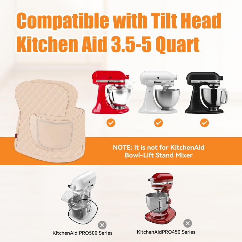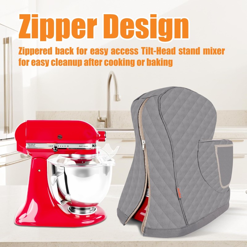 - Easy Access- Recisely sized to fit all KitchenAid Tilt Head models (14.38“ x 18”) with a zipper on the back of the cover for easy access to the mixer. Add convenience to your kitchen routine