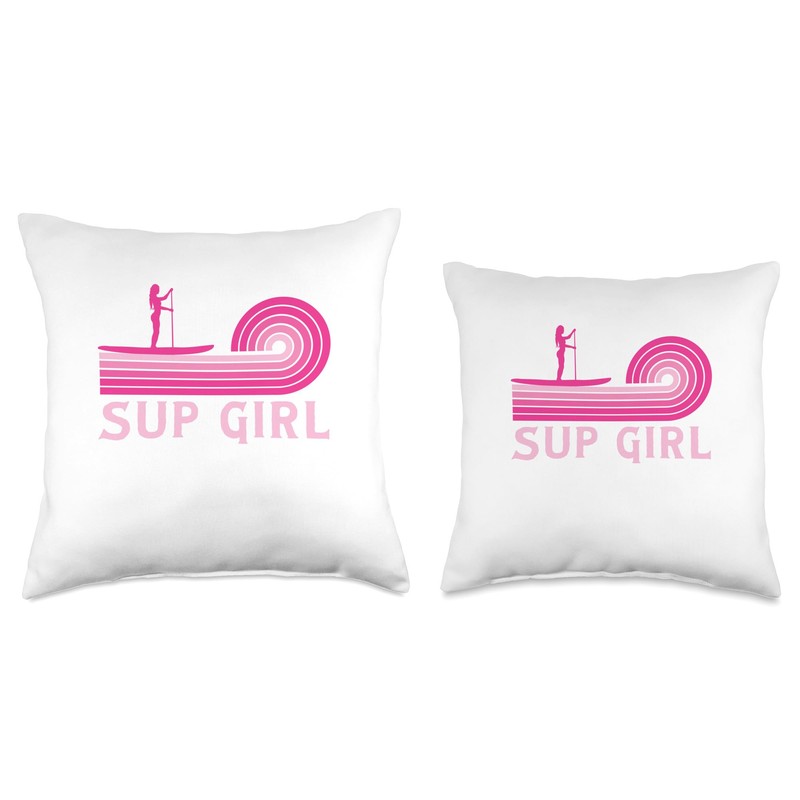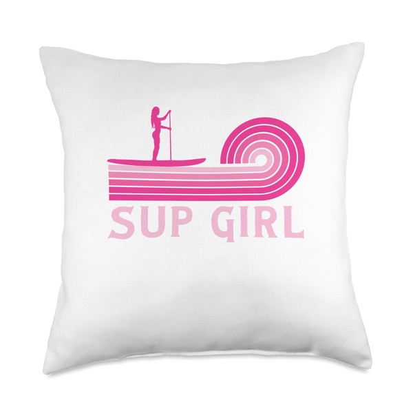 Stand Up Paddle Board Gifts & Apparel Girl SUP Paddle Board Throw Pillow, 18x18, Multicolor