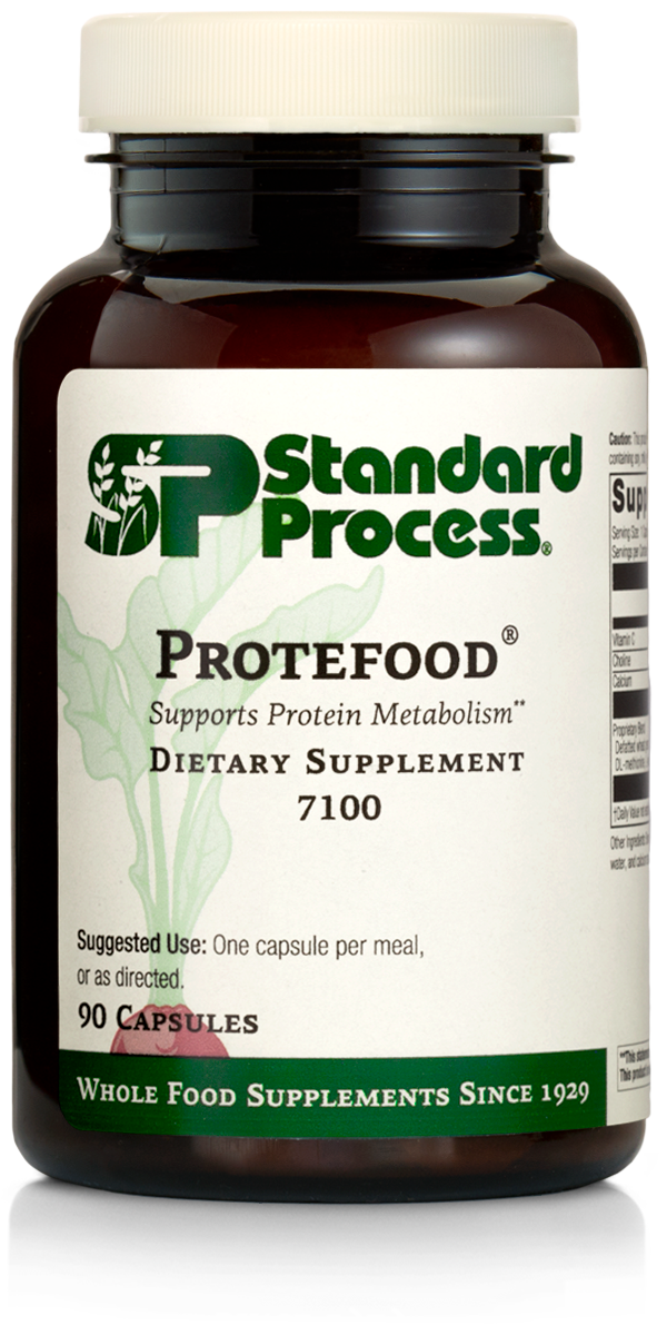 Protefood supports protein metabolism and immune system response function as well as skeletal and muscular health. Since 1929, Standard Process has been the visionary leader in whole food nutrient solutions. We apply systems thinking to holistic nutrition that empowers practitioners to transform lives. Dedicated to the whole food philosophy of our founder, Dr. Royal Lee, our goal is to carry on his mission to provide nutrients for the body that are as close as possible to how they are found in nature. Our products include foods that are prepared in a way that safeguards their nutritional value. The majority of these ingredients are grown locally on our certified organic farm and may require chopping, dicing, juicing and/or drying for use in our products. The resulting whole food ingredients are then added to a formula that may include whole food extracts, animal tissue extracts and concentrates, botanicals, whole food isolates and synthetic ingredients. These highly complex combinations contain a variety of elements designed to trigger trophic effects that support the body’s healthy balance and wellness.