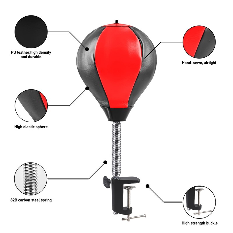 - Super suction power: standing punching bag brand new upgrade! The larger ball features a durable, strong impact spring, a stronger suction cup and a sturdy metal clip that holds the ball securely in place and minimises interference so it does not fall off easily on even strokes