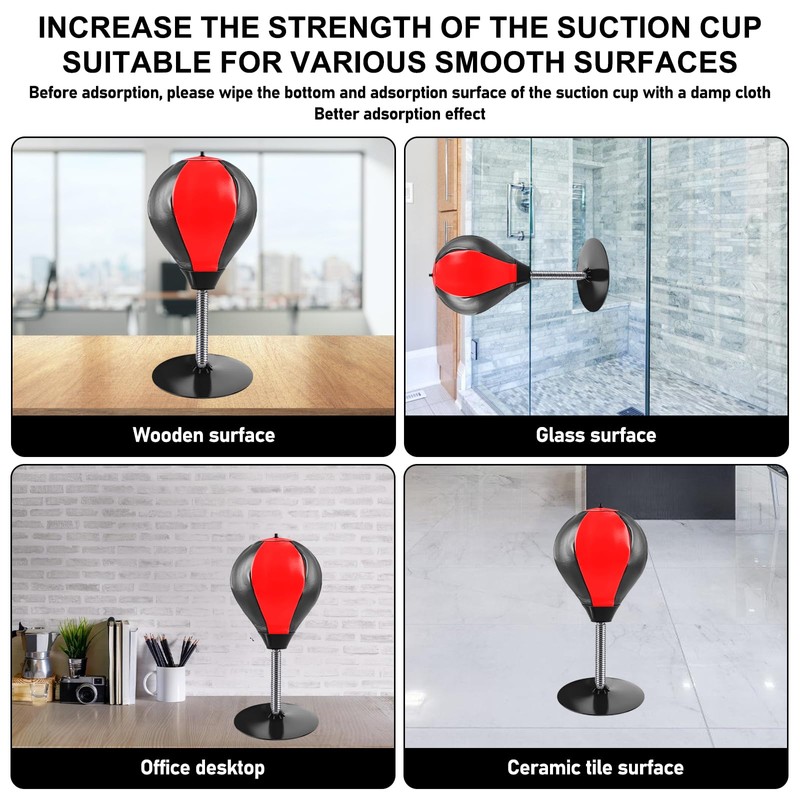 - Sturdy and durable: our standing punching bag is made of elastic springs and high-quality materials to ensure a long service life and withstand countless impacts from you and your colleagues. The suction cup sticks firmly to the surface and the elastic spring always bounces back