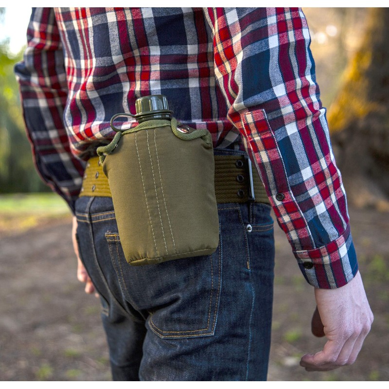 - G.I. style heavy-duty plastic canteen with screw on cap