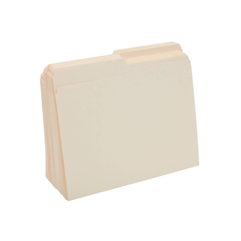 - Manila standard thickness paper stock is long-lasting and durable. Two 1/2-cut top tabs allow ample space for labelling to keep your files organized. Letter-size folders hold important files with ease. 100 folders store and organize countless vital documents. Contains 30% total recycled content. Tear-resistant for absolute safe keeping. Stylish rounded corners that aren't likely to snag and tear.