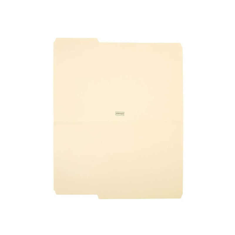 Make your filing system easier to manage with this box of 100 Staples legal-size reinforced-tab 3-tab manila file folders. Browse your filing system faster with these legal-size reinforced-tab manila file folders. Each file folder is scored for 0.75-inch expansion to provide more room, so it can hold more while making it easier to insert and retrieve files. These Staples manila file folders have reinforced tabs to help minimize the impact of wear and tear as staff browse through them. Manila standard thickness paper stock is long-lasting and durable. Three 1/3-cut top tabs allow ample space for labeling to keep your files organized. Legal width for holding oversize documents without folding. 100 folders store and organize countless vital documents. Contains 30% total recycled content. These Staples legal-sized manila folders are perfect for any organizational needs your business requires. Each box comes with 100 folders, and each folder has one of three tab positions for ease of filing. Made with 30% post-consumer material, these folders are not only durable and versatile, they are environmentally friendly.Durable with Reinforced TabsWith reinforced tabs, these folders are guaranteed to last longer than your standard manila folder. Made from stock, these folders can expand up to 3/4", making them durable and versatile for almost any filing and documenting needs.Three Separate Tab PositionsOrganization is a breeze with three separate tab positions in this 100-folder box. Featuring a traditional one third cut tab, these folders show content without blocking the view of the folders behind them. Use in a variety of positions in your business filing cabinet to make sure finding the exact folder is easy-- you won't have to bend folders to read labels or take unnecessary folders out of order.