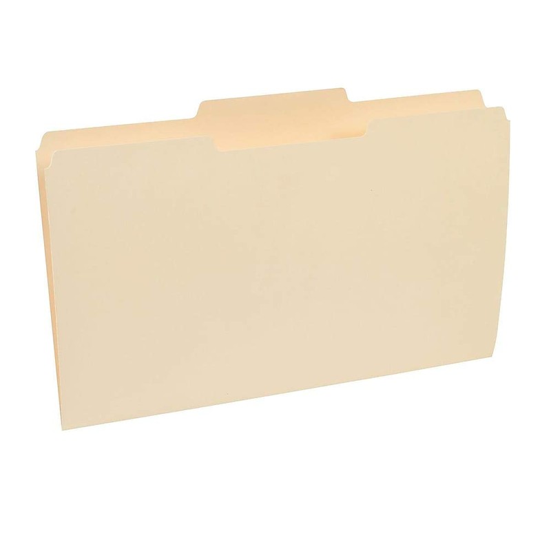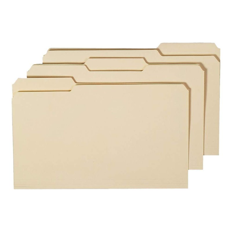 - Manila standard thickness paper stock is long-lasting and durable. Three 1/3-cut top tabs allow ample space for labeling to keep your files organized. Legal width for holding oversize documents without folding. 100 folders store and organize countless vital documents. Contains 30% total recycled content.
