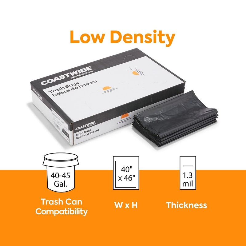 Staples COASTWIDE Trash Bg 40-45 Gal 40X46 Reprocessed Resin 1.3 Mil Black 100 Ct