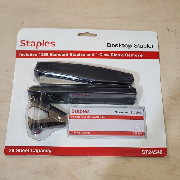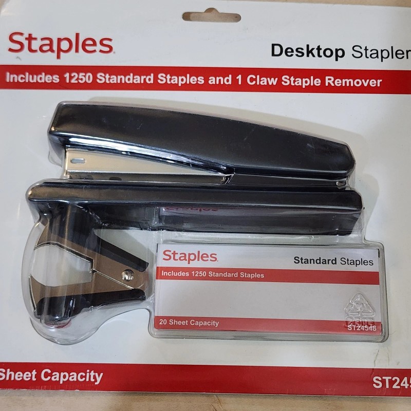 Staples Desktop Stapler Full-Strip 20 Sheet Capacity Black with Remover ST24548