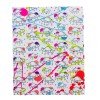 colorful polka dots and lines on a white background.