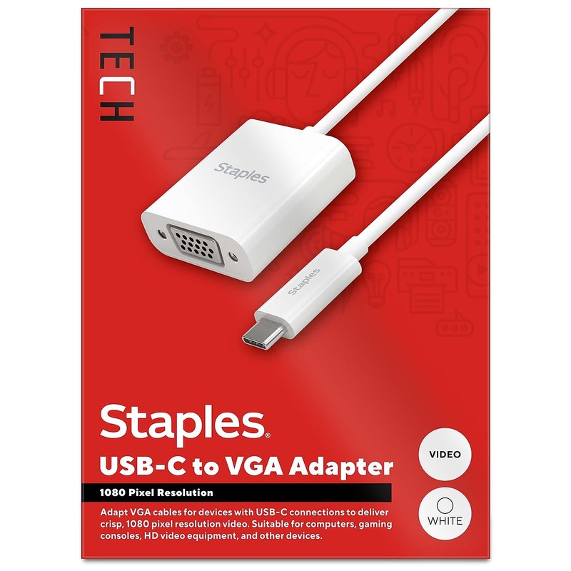 - Extend your display with sharp, high-resolution visuals using the Staples TECH USB-C to VGA Adapter