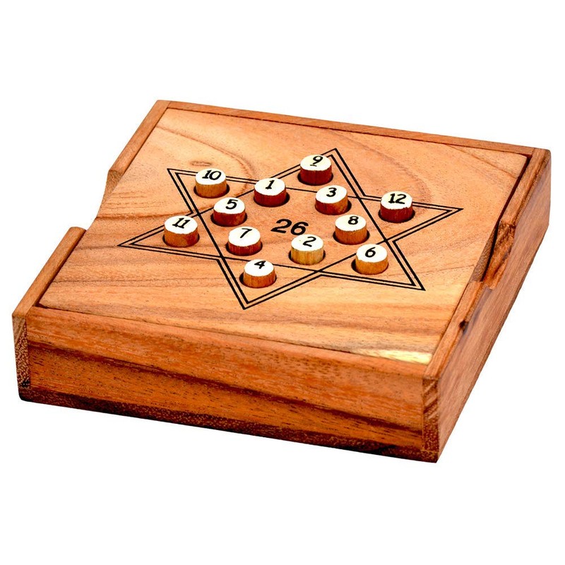 Star 26 Game Box, A Star and Each Line Should Make a Sum of 26, Puzzle Wood Educational Game for Children, Calculating Game, Straw with Numbers, Concentration Game, Puzzle Game