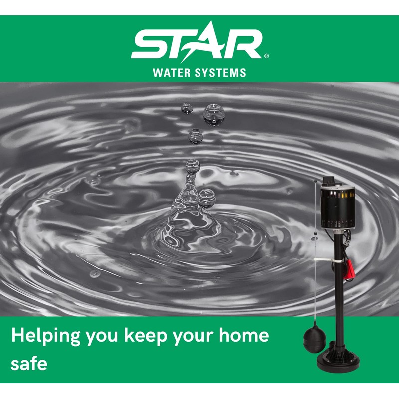Star 3CDH Cast Iron Pedestal Sump Pump with Easily Adjustable On/Off Float Rod Switch, High Efficiency Column Pump, 58 GPM, 4 Amps