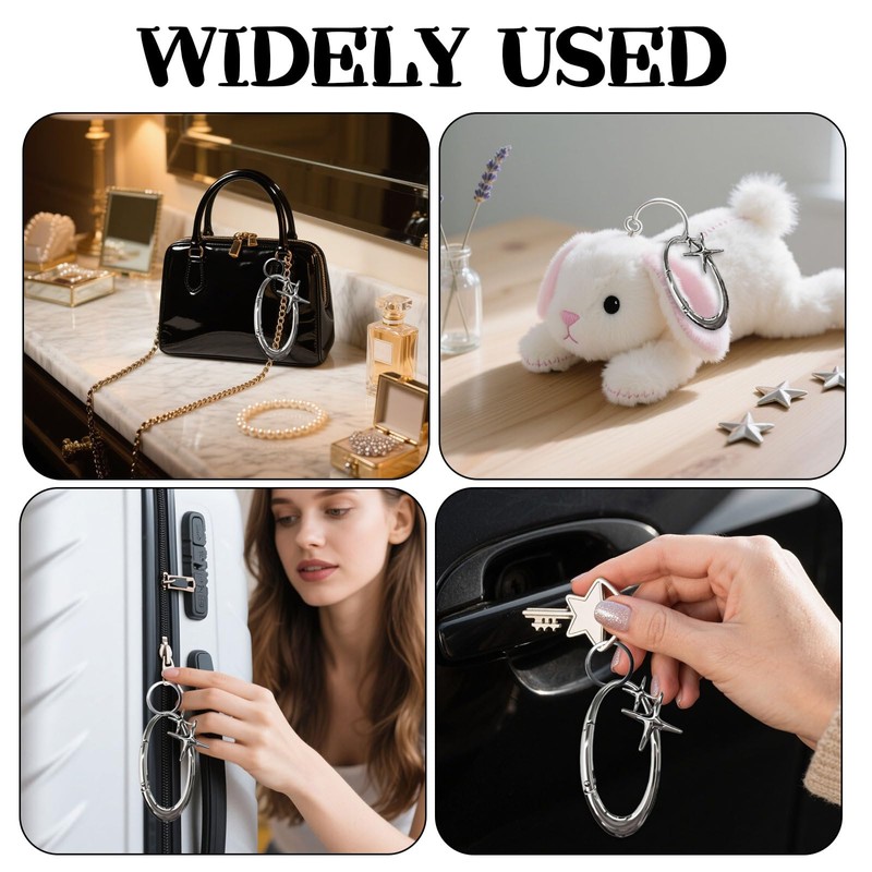 - 【Durable Construction】Durable stainless steel star-shaped multi-functional carabiner hook combines strength and lightness to ensure long-term daily use. The sturdy metal is rust-resistant, and whether hung on car keys, backpacks, or luggage, this key ring will maintain its shiny appearance without bending or breaking.