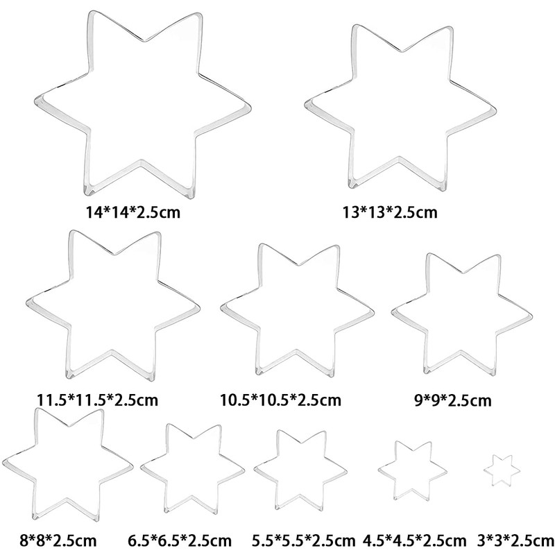 Pack of 10 star-shaped cookie cutters, stainless steel cookie cutters, biscuit cutters, star cutters.