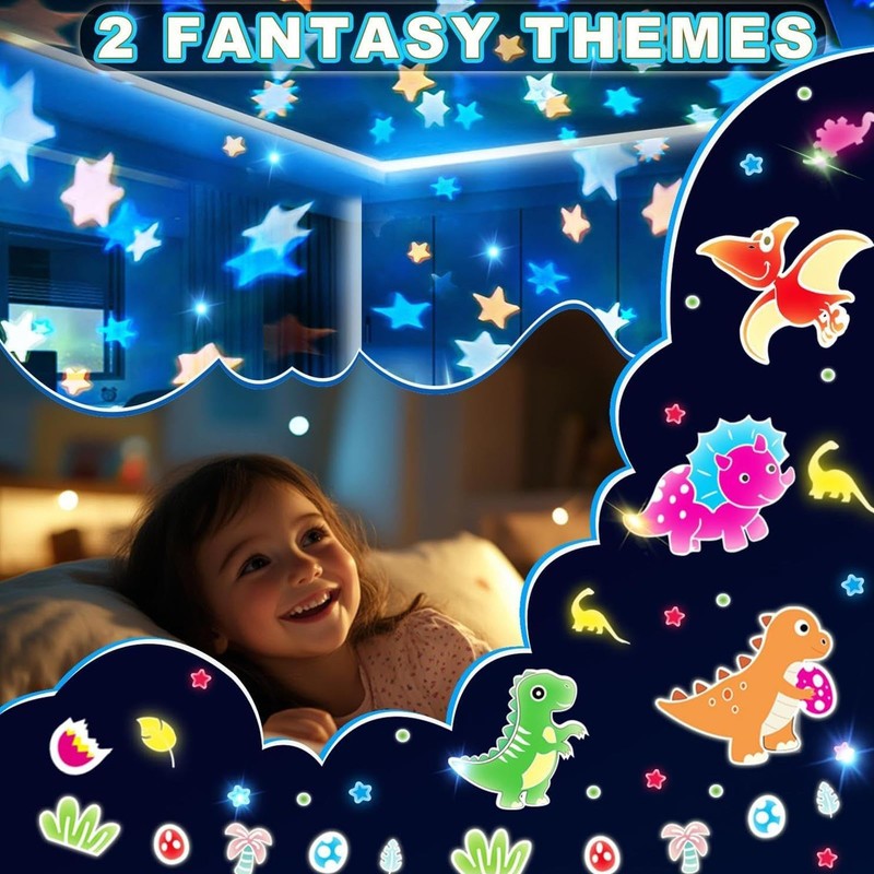 - Exquisitely Crafted: Provides two exchangeable projection discs presenting vivid dinosaur motifs designed to captivate children's attention and encourage their natural inclination toward discovery and fun