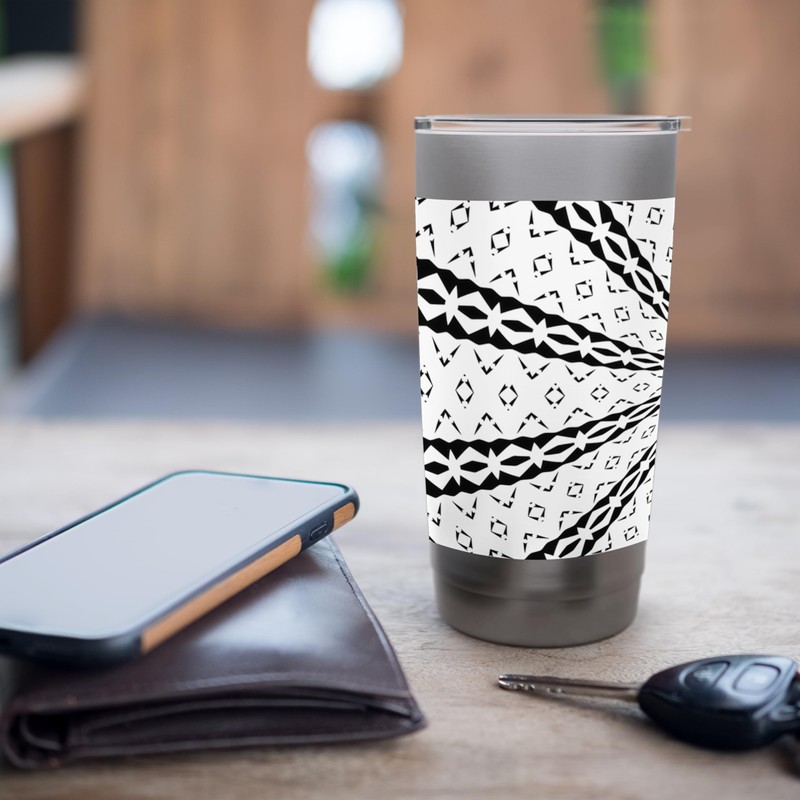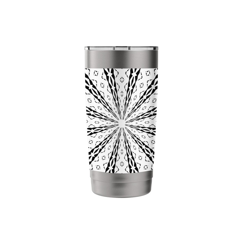 Star Effect Geometric Symmetrical Pattern Black On White Stainless Steel Insulated Tumbler