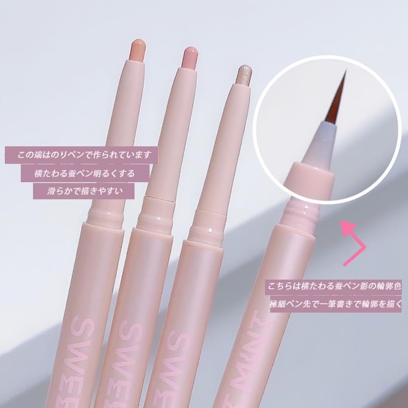 - (Feeling) Smooth drawing and adheres firmly to your eyes. You can easily apply the teardrop bags to make your makeup look more beautiful. Double Effect Shadow + Liner 2 in 1 Can be used as a tear bag or eye shadow for gradual makeup