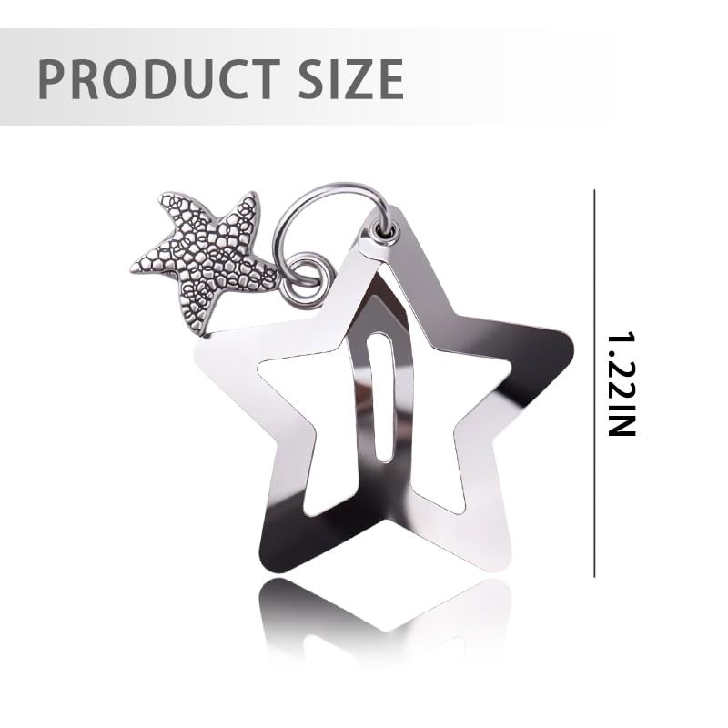• Stylish Star Pendant Hairclip Hairpins: These y2k star hair accessories features with star shaped with small star pendant has become stylish star hair barrettes for women girls, wearing this silver star hair clips can make you stand out in the crowd, stylish star hair clips y2k, 2000s hair accessories for youth girls, y2k hair snap clips for women, metal snap hair clips for girls