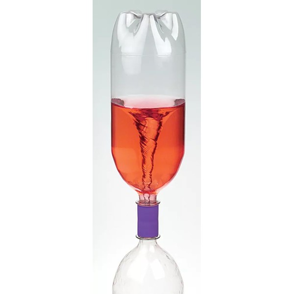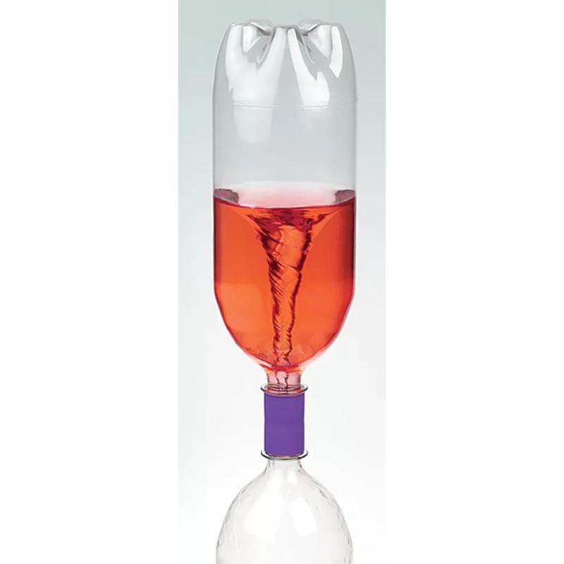 • Once the bottles are connected, you can flip them over so that the empty bottle is on top. Give it a gentle swirl or rotate the assembly in a circular motion, and you'll witness a fascinating tornado-like vortex forming inside the bottles. The liquid flows through the tornado tube, creating a visually captivating spiral effect that mimics the dynamics of a tornado.