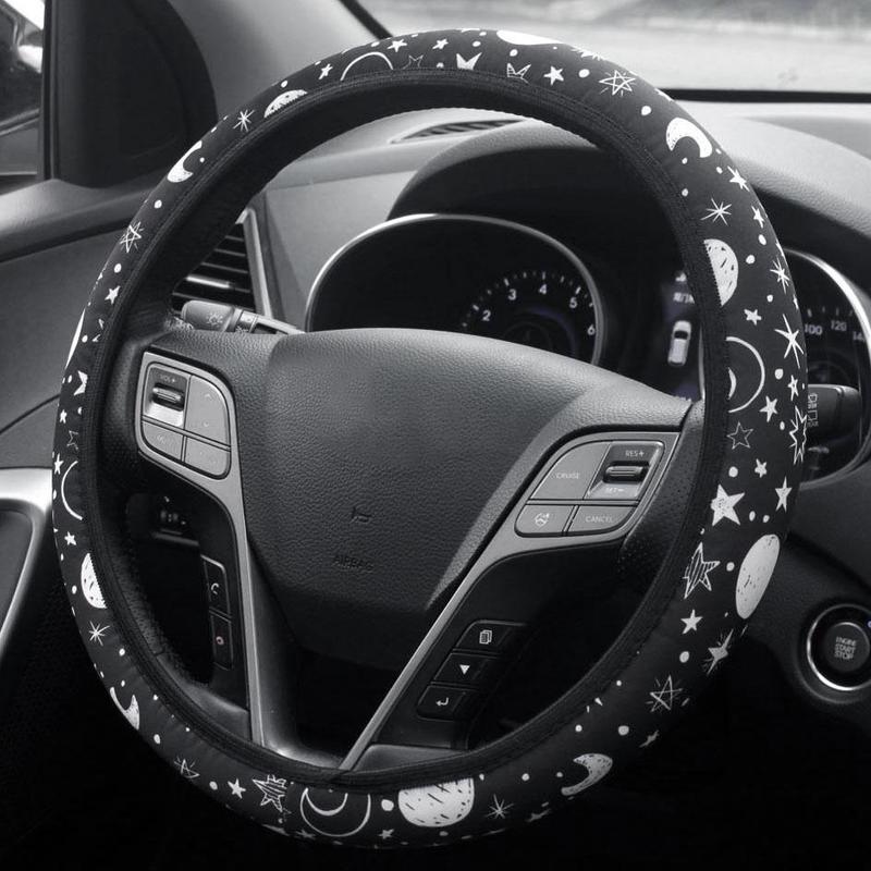 Star & Moon Pattern Car Steering Wheel Cover, Universal Non-slip Car Steering Wheel Protector, Car Steering Wheel Accessories, Universal Elastic Washable Car Steering Wheel Cover Without Inner Ring