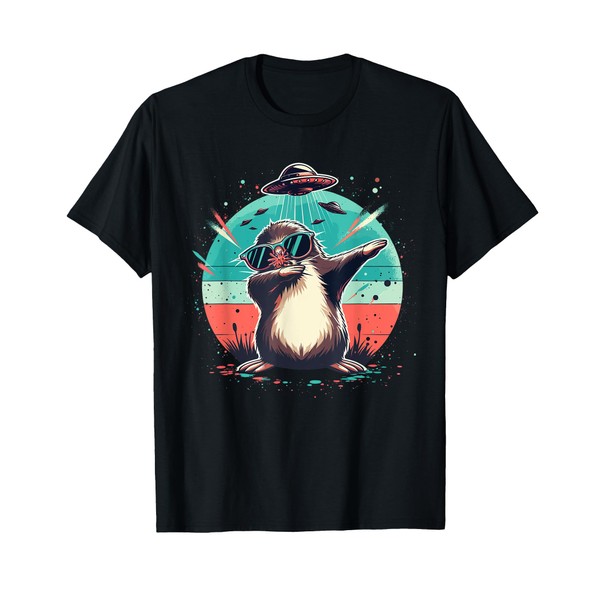 Star Nosed Mole Dabbing Funny UFO Alien Sunset Spaceship Pun T-Shirt