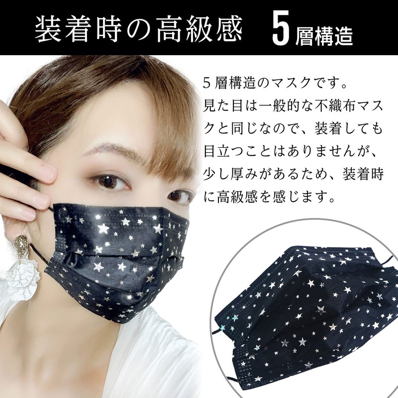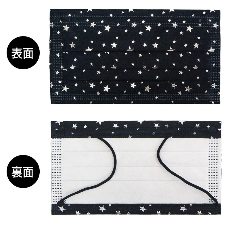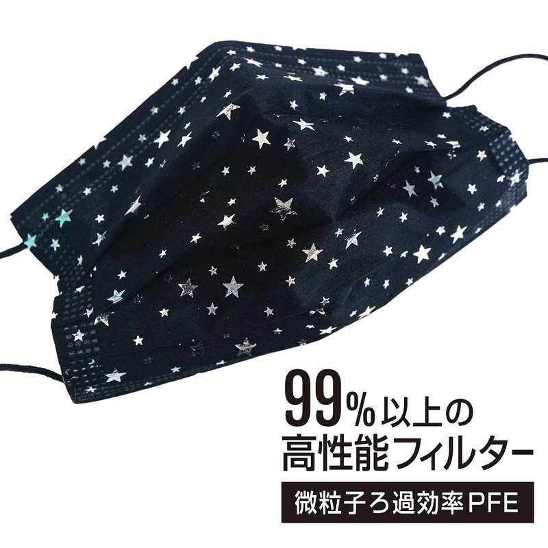 ■Star Pattern Black Mask, Sparkly Silver (Silver) 5 Layer Non-Woven Mask Unisex Individually Wrapped Over 99% PFE