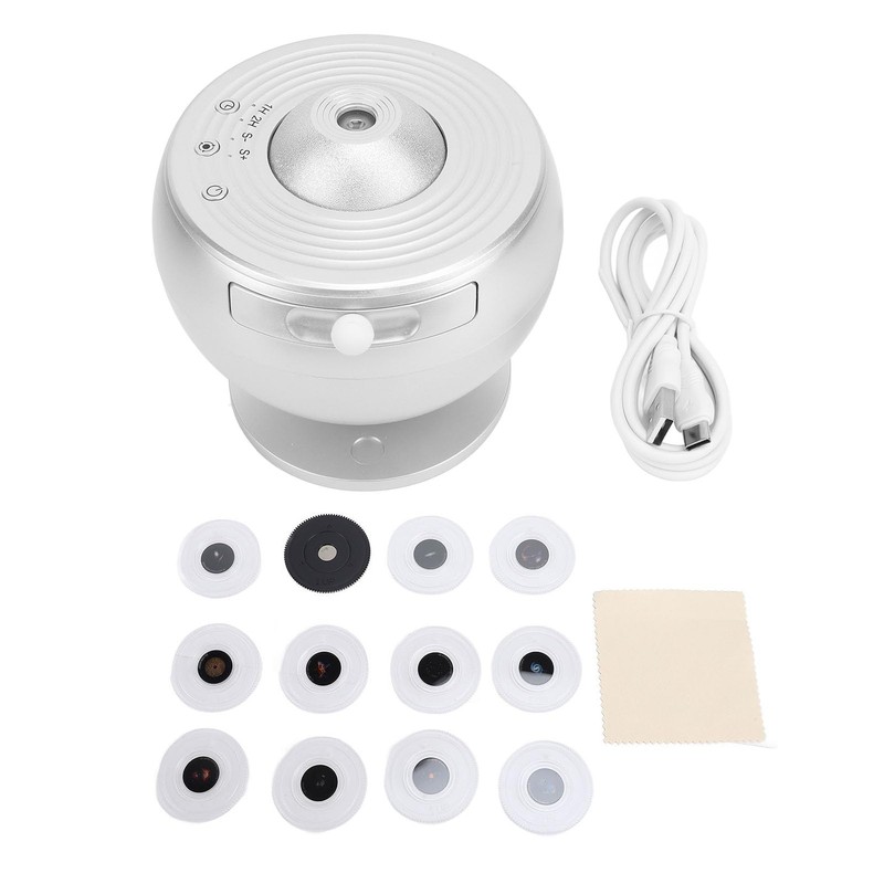 - 12 THEME FILMS: The star projector comes with 12 themed films including Solar System, Earth, Moon, Andromeda, Observable Universe, M60 UCD1, Mysterious Mountain, Small Magellanic Cloud, ect. It projects impressive galaxies indoors.