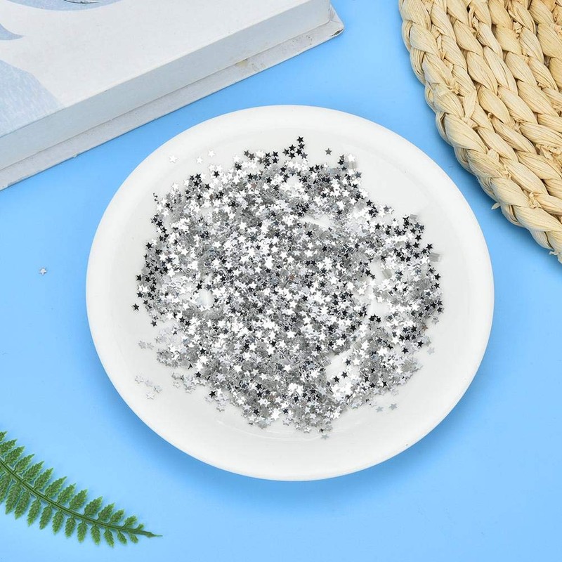 Star Sequins, 50G DIY PET No Hole Star Shape Sequins 3MM Table Confetti Foil Sparkle Stars Sequin for Party Wedding Decorations(Silver)