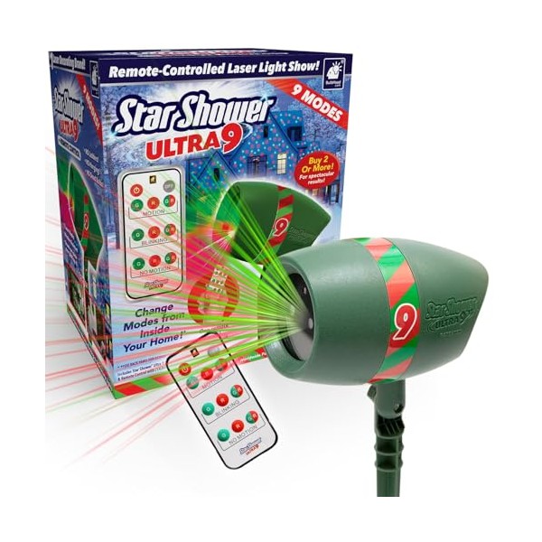 Star Shower Ultra 9 2024 Holiday Projector, AS-SEEN-ON-TV, Fast & Easy Way to Decorate Your Home, Laser Modes, Projects Thousands of Green and Red Lights, No Ladders or Hanging, Remote Control