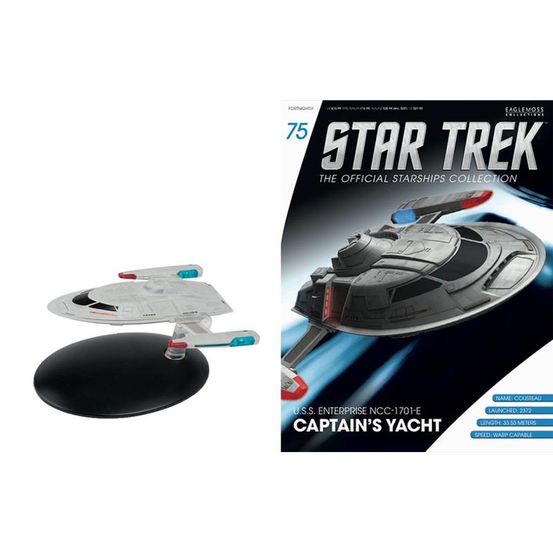 - This Star Trek Starships Enterprise E Captains Yacht Metal Die-Cast Vehicle with Collector Magazine has been painstakingly recreated in die-cast metal, high-quality plastic materials, then hand painted with an incredible level of detail.