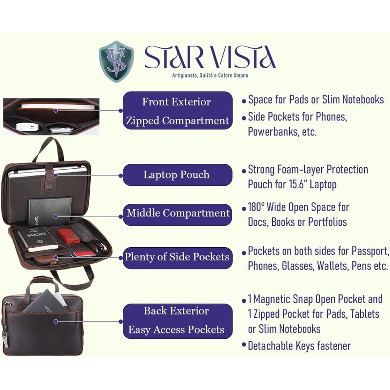 - 【QUALITY FROM THE SOURCE】 Crafted with full grain cowhide leather sourced from premium pastures, tanned with natural plant extracts, this STAR VISTA briefcase is built to last with a professional look and feel for your daily commute.