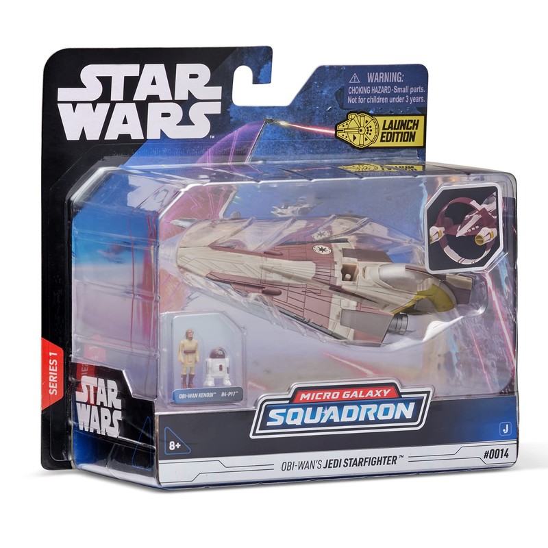 Track down Jango Fett with the Star Wars Micro Galaxy Squadron OBI-WAN KENOBI'S JEDI STARFIGHTER. Featuring incredible details and authentic scaling, this 5-inch DELTA-7B INTERCEPTOR is the JEDI KNIGHTS' preferred starfighter. Navigate the GEONOSIAN asteroid belt with a removable hyperdrive ring, retractable landing gear, opening cockpit, and working droid socket designed to fit the included R4-P17. Vehicle also includes an articulated 1-inch Obi-Wan Kenobi micro figure, compatible with any Star Wars Micro Galaxy Squadron craft. Collect this Jedi Starfighter, along with other Star Wars Micro Galaxy Squadron vehicles, and fortify your fleet! (Each sold separately & subject to availability.)