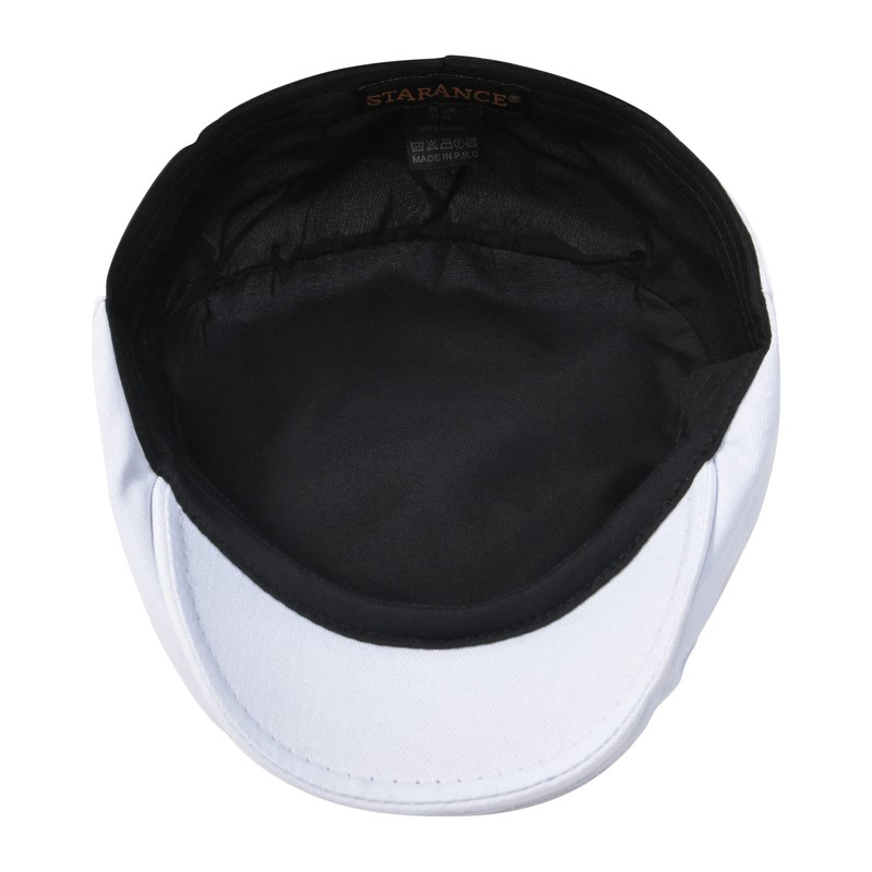 STARANCE Men's Cotton Ivy Gatsby Newsboy Hat Summer Driving Scally Cap Thin (White, 7 1/4)