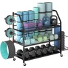 Staransun Home Gym Storage Rack - Weight Rack for Dumbbells - Yoga Mat Storage Rack with Two Extra Side Storage Space - Garage Storage with Caster Wheels - Workout Equipment Organizer - Easy to Assemble
