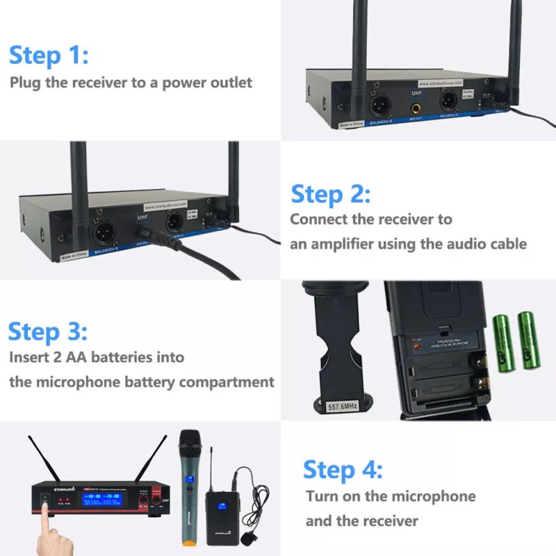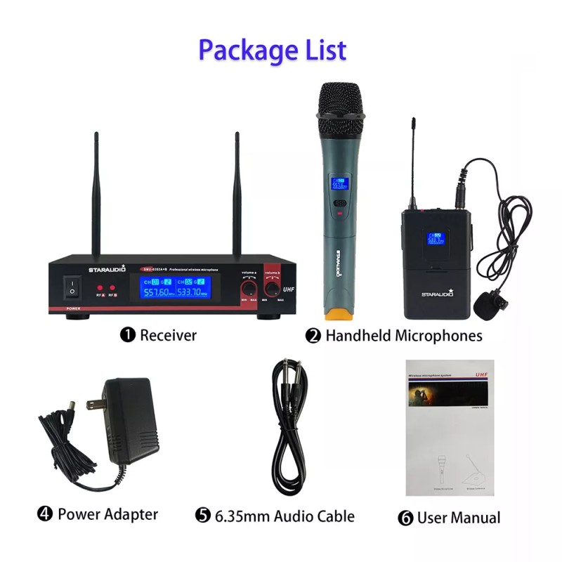 STARAUDIO Wireless UHF Microphone Receiver Handheld Mic Headset Lavalier Lapel Microphones