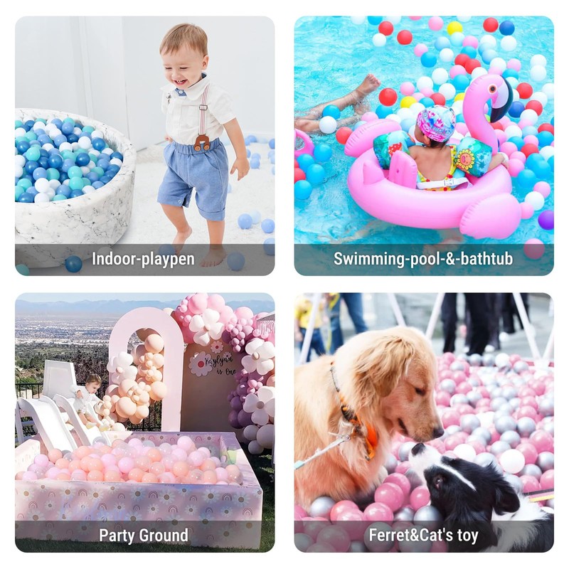 - It is very suitable for filling any ball pit, play tent, play room, baby swimming pool, play fence and bounce room. Ideal for baby or toddler ball pits, children’s swimming pools, indoor fences and parties, baby bath toys.
