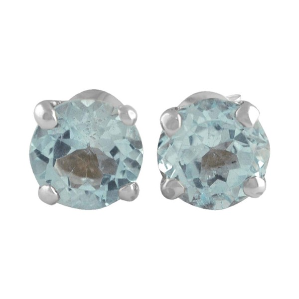 - Pendientes de topacios azules estilo poste de 6 mm con piedras preciosas facetadas engastadas en plata de ley.