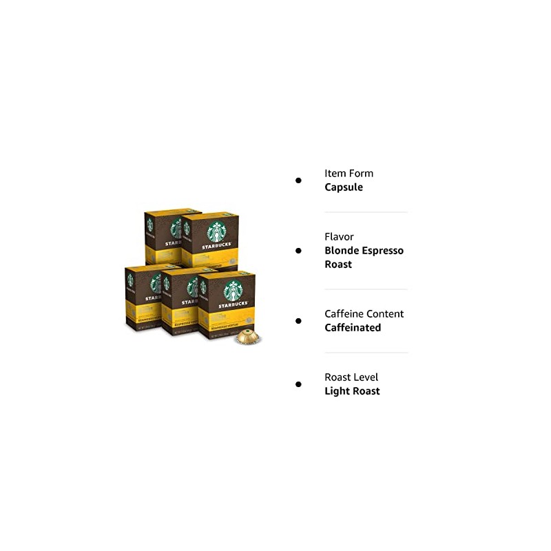 - 50 recyclable aluminum capsules with smooth, sweet Starbucks Blonde Espresso Roast coffee